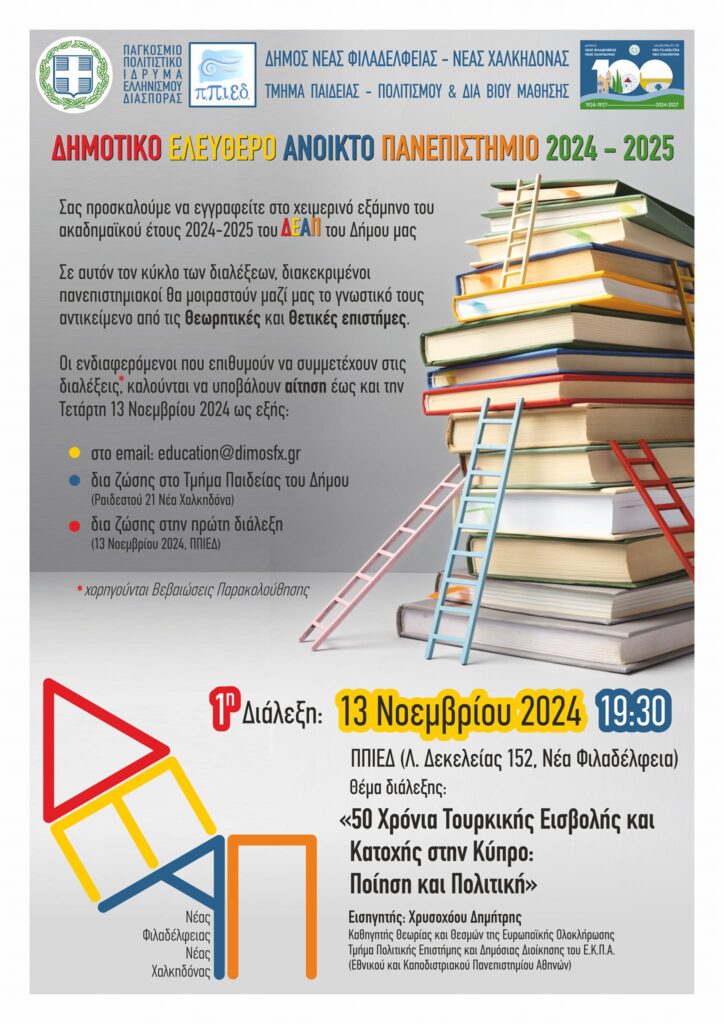 Ανοίγεται έτσι ένα «παράθυρο» συνεργασίας και αλληλεπίδρασης της πανεπιστημιακής κοινότητας με την τοπική μας κοινωνία και όχι μόνο. Η συνεργασία αυτή της τοπικής αυτοδιοίκησης και της πανεπιστημιακής κοινότητας θα εγκαινιαστεί με κάθε επισημότητα την Τετάρτη 13/11/2024 και ώρα 19.30 στο ΠΠΙΕΔ (Λ. Δεκελείας 152).