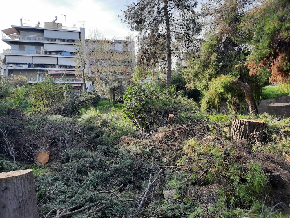 Κάπου εκεί, έχοντας απολέσει κάθε εργαλείο τεκμηρίωσης, ο κ. Δήμαρχος επιλέγει να διατάξει τις υπηρεσίες του Δήμου να εκτελέσουν την κοπή των δένδρων. Και ‘’τα εκτελούν’’!! Δεκαέξι δένδρα που αναπτύσσονταν επί δεκαετίες και που χρειάζονται άλλες τόσες για να ξαναγίνουν όπως ήταν. Ένας πνεύμονας πρασίνου καταστρέφεται προκειμένου να γίνει παρακαμπτήριος κάποιων ημερών για τα μέσα μαζικής συγκοινωνίας.