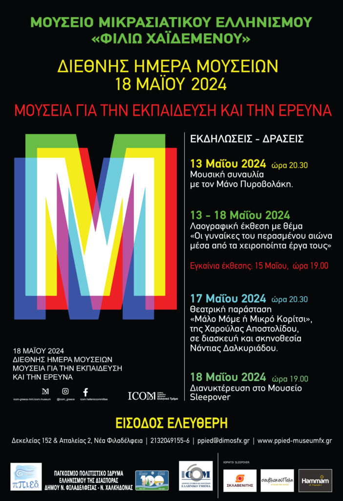 Ο Δήμος Νέας Φιλαδέλφειας- Νέας Χαλκηδόνας, θέλοντας να αναδέιξει την Παγκόσμια Ημέρα Μουσείων και να ευαισθητοποιήσει τους συμπολίτες και τις συμπολίτισσες για την αξία ενός μουσείου στην πολιτιστική μας ζωή, διοργανώνει σειρά εκδηλώσεων για το θέμα.