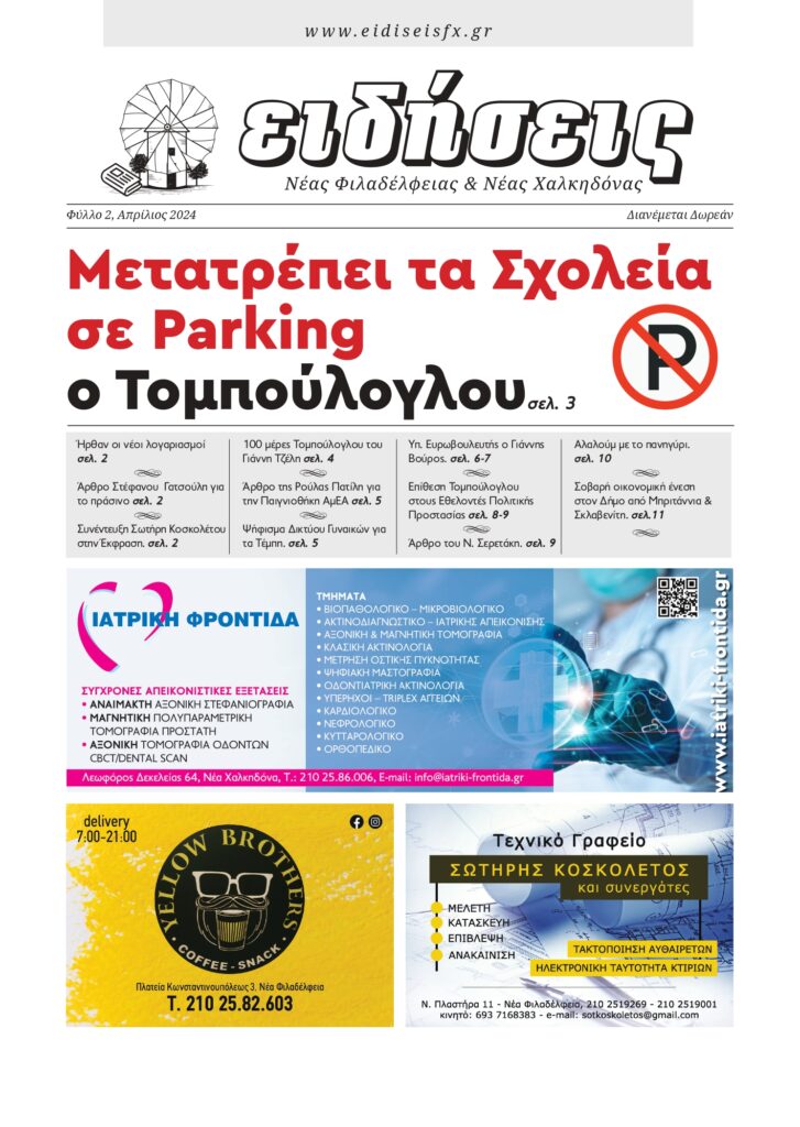 Κυκλοφορεί σε όλες τις γειτονιές της πόλης μας το 2ο φύλλο της εφημερίδας “Ειδήσεις Νέας Φιλαδέλφειας & Νέας Χαλκηδόνας”!
