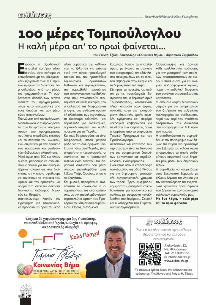 • άρθρο του επικεφαλής της δημοτικής παράταξης “Κοινωνίας Βήμα”, Γιάννη Τζέλη