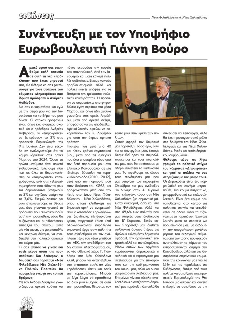 • Αποκλειστική συνέντευξη του πρ. Δημάρχου Ν.Φ. – Ν.Χ. και υποψ. Ευρωβουλευτή Γιάννη Βούρου
