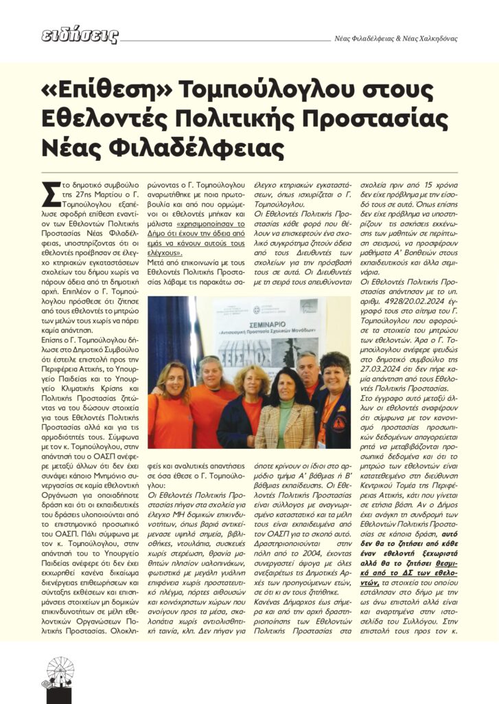Κυκλοφόρησε το 2ο φύλλο της εφημερίδας “Ειδήσεις Νέας Φιλαδέλφειας – Νέας Χαλκηδόνας!