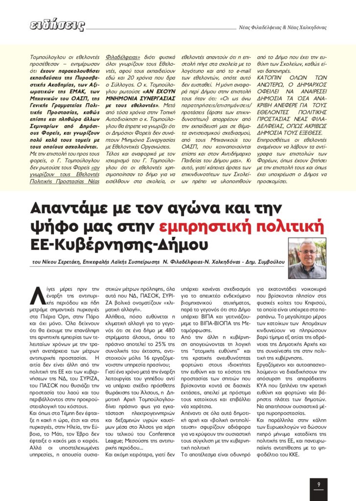 • άρθρο του επικεφαλής της “Λαϊκής Συσπείρωσης” ΝΦ-ΝΧ, Νίκου Σερετάκη