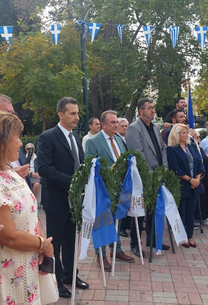τον Δήμαρχο Νέας Φιλαδέλφειας – Νέας Χαλκηδόνας Ιωάννη Τομπούλογλου, τον Πρόεδρο του Συνδέσμου Μικρασιατών & Αλησμόνητων Πατρίδων Χρήστο Τριανταφύλλου, τον Πρόεδρο του Δημοτικού Συμβουλίου Λευτέρη Αντωνόπουλο, τον Αντιπρόεδρο του Παγκοσμίου Πολιτιστικού Ιδρύματος την Ελληνισμού της Διασποράς (ΠΠΙΕΔ) Κώστα Τομπούλογλου, τον Αντιπεριφερειάρχη Κεντρικού Τομέα της Περιφέρειας Αττικής Κώστα Ζώμπο, τον Βαγγέλη Βεσκούκη εκπροσωπώντας την Συμπαράταξη κίνηση πολιτών – Η Πόλη της Καρδιάς, τον Δημοτικό Σύμβουλο Ηλία Τάφα εκπροσωπώντας την Δημοτική Παράταξη «Πολιτών Πολιτεία», τον Επικεφαλής της Δημοτικής Παράταξης «Σύγχρονη Πόλη» Στέφανο Γατσούλη, τον Επικεφαλής της Δημοτικής Παράταξης «Κοινωνίας Βήμα» Γιάννη Τζέλη, τον Πρόεδρο του Συλλόγου Πελοποννησίων «Ο Γέρος του Μοριά» Χαράλαμπο Μπόβο, την Πρόεδρο της Ένωσης Κρητών Ελένη Κανατά, την Όλγα Κοντοειδή εκπροσωπώντας τον Σύλλογο Ποντίων «Δημήτριος Υψηλάντης», τον Πρόεδρο του Αθλητικού Συλλόγου Ιωνικού Χρήστο Σύλλα, τον Πρόεδρο της Ένωσης Βουρλιωτών Φώτη Κάραλη, καθώς και από: την Τοπική Οργάνωση Νέας Δημοκρατίας, τον τοπικό ΣΥΡΙΖΑ ΠΣ, την ΟΝΝΕΔ. Αντί στεφάνων κατέθεσαν χρήματα για φιλανθρωπικούς σκοπούς ο Σύλλογος Ηπειρωτών «Μάρκος Μπότσαρης» και ο Σύλλογος Αντιοχειτών «ο Μέγας Αλέξανδρος».