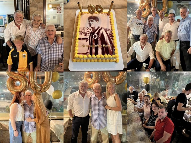 “Χθες 26 Ιουνίου μαζευτήκαμε φίλοι παλιοί αγαπημένοι, συμπαίκτες παλαίμαχοι της ΑΕΚ από το παρελθόν, κόρες γαμπροί κι εγγόνια και γιορτάσαμε τα 80 χρόνια του Μιχάλη Σιμιγδαλά.